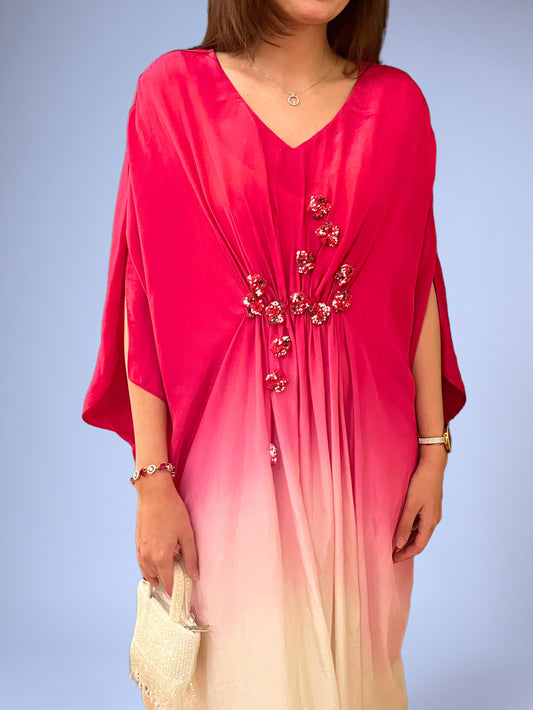 The Micro Floral Kaftan Dress (FUSCHIA)